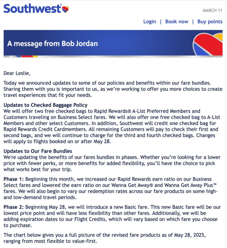 Editor's Note: Southwest just announced several more changes (including all new fare names plus new seating perks for credit card holders) on April 28, 2025.
